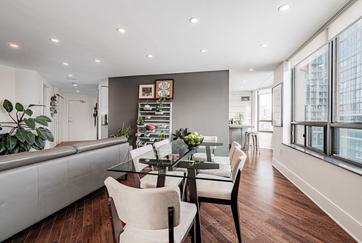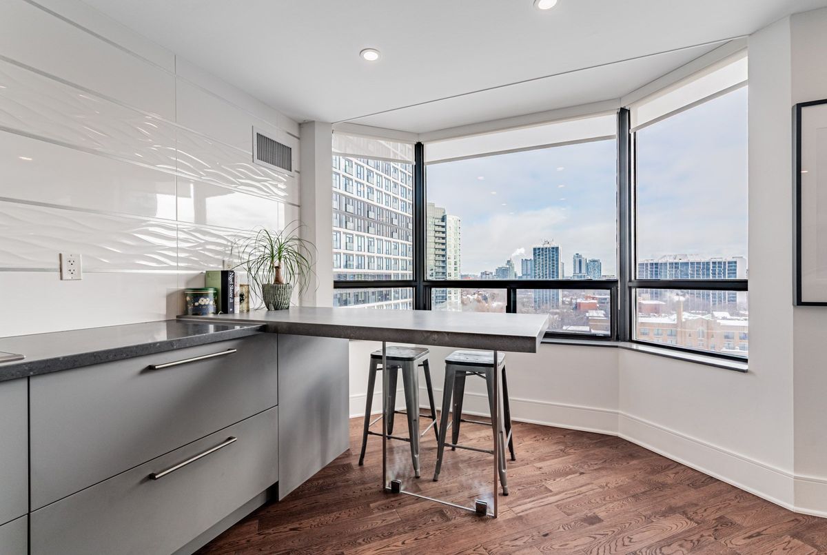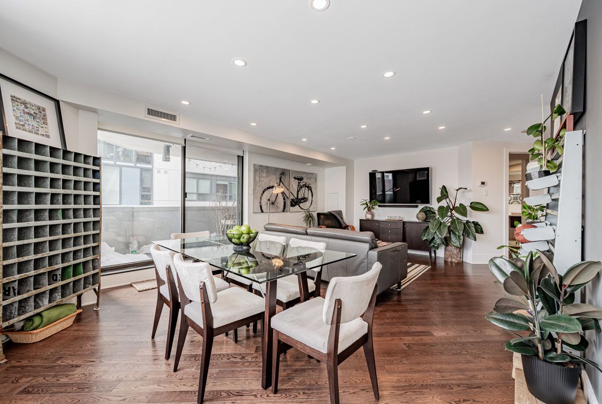 An exceptional downtown residence offering space, privacy, and finish rarely found in condo living. Welcome to Jarvis Gardens: a boutique building, known for long-term ownership and limited turnover in the heart of the city, featuring a fully renovated 2-bedroom, 2-bath home designed for long-term comfort and everyday ease.This suite offers 1,300+sq. ft. of interior space with a split-bedroom layout providing true separation of living areas. The open-concept living and dining space is filled with natural light and opens to a large southeast-facing balcony with open city views, ideal for entertaining in luxury or quiet evenings at home.Engineered hardwood flooring runs throughout, complemented by heated tile flooring at the entrance, and clean, contemporary finishes. The kitchen features quartz countertops, premium integrated appliances, a breakfast bar, and a custom laundry area offering quartz counter tops, additional prep space, large sink and storage, a highly functional upgrade.The primary bedroom includes balcony access, custom integrated closets, and a renovated ensuite with heated floors, double vanity, and oversized glass shower with multi-jet shower heads. The second bedroom is generously sized and located beside a full bathroom, suitable for guests, a roommate, or home office use.Jarvis Gardens is a quiet, well-managed pet friendly building with only 44 suites and just 4 units per floor. Amenities include rooftop terrace with garden plots, gym and yoga studio, sauna, party room with walk-out patio and BBQ, and on-site superintendent. Parking and large ensuite storage included.Steps to St. Lawrence Market, Financial District, TTC, parks, cafés, and daily essentials. This is downtown living without compromise, offering space, quality, and a layout designed to grow with you.