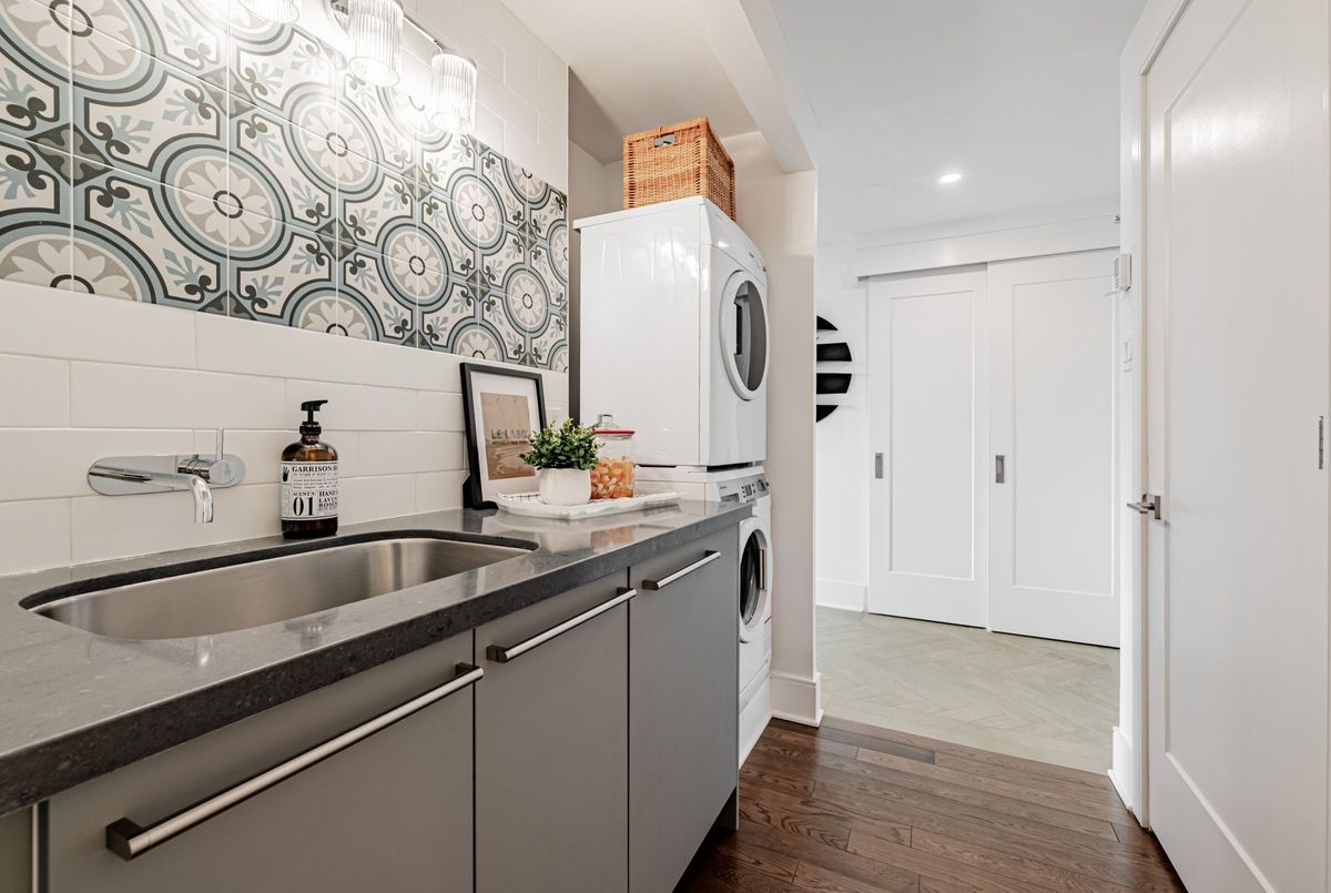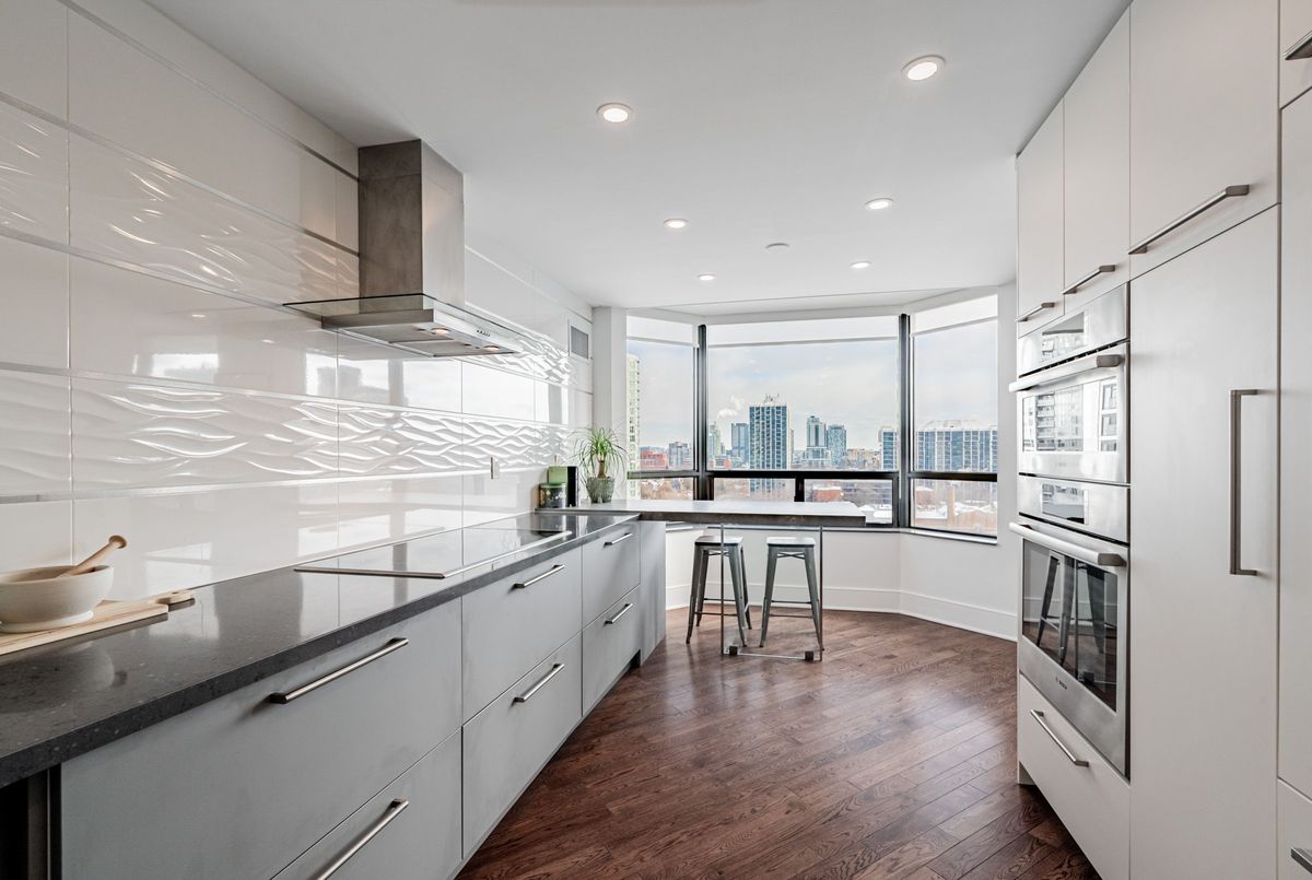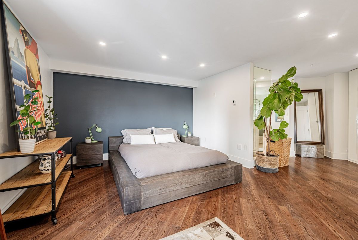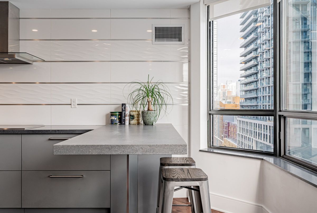 An exceptional downtown residence offering space, privacy, and finish rarely found in condo living. Welcome to Jarvis Gardens: a boutique building, known for long-term ownership and limited turnover in the heart of the city, featuring a fully renovated 2-bedroom, 2-bath home designed for long-term comfort and everyday ease.This suite offers 1,300+sq. ft. of interior space with a split-bedroom layout providing true separation of living areas. The open-concept living and dining space is filled with natural light and opens to a large southeast-facing balcony with open city views, ideal for entertaining in luxury or quiet evenings at home.Engineered hardwood flooring runs throughout, complemented by heated tile flooring at the entrance, and clean, contemporary finishes. The kitchen features quartz countertops, premium integrated appliances, a breakfast bar, and a custom laundry area offering quartz counter tops, additional prep space, large sink and storage, a highly functional upgrade.The primary bedroom includes balcony access, custom integrated closets, and a renovated ensuite with heated floors, double vanity, and oversized glass shower with multi-jet shower heads. The second bedroom is generously sized and located beside a full bathroom, suitable for guests, a roommate, or home office use.Jarvis Gardens is a quiet, well-managed pet friendly building with only 44 suites and just 4 units per floor. Amenities include rooftop terrace with garden plots, gym and yoga studio, sauna, party room with walk-out patio and BBQ, and on-site superintendent. Parking and large ensuite storage included.Steps to St. Lawrence Market, Financial District, TTC, parks, cafés, and daily essentials. This is downtown living without compromise, offering space, quality, and a layout designed to grow with you.