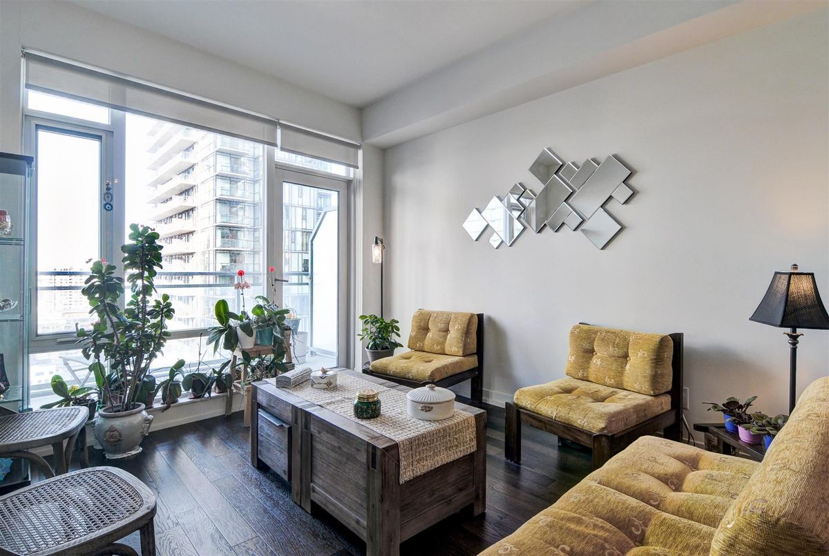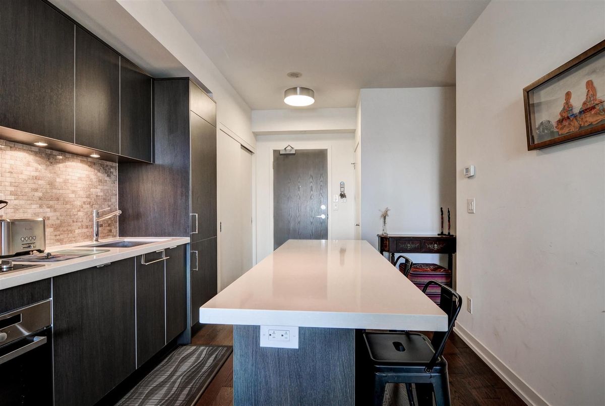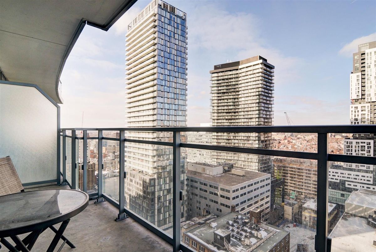 Welcome to Cinema Tower in the heart of Toronto's vibrant Entertainment District! This beautifully maintained 1 Bedroom + Den suite on the 20th floor offers a bright, functional layout with fabulous city views through floor-to-ceiling windows. The modern kitchen features built-in appliances, quartz countertops, and a centre island with breakfast bar, perfect for cooking or entertaining. The spacious primary bedroom includes two closets, while the versatile den is ideal for a home office or additional storage. Enjoy the convenience of full-size stacked laundry and step out onto the 108 sq ft private balcony to take in the stunning city skyline. Residents enjoy outstanding building amenities including 24-hour concierge, a fully equipped gym, full-size basketball court, media/screening room, guest suites, steam room, and a rooftop terrace with BBQs. Located just steps to the PATH, TTC, Financial District, restaurants, shops, theatres, TIFF Lightbox, Rogers Centre, and more, with easy access to the Gardiner Expressway. An exceptional opportunity to live in one of downtown's most sought-after buildings. Includes 1 parking and 1 locker.