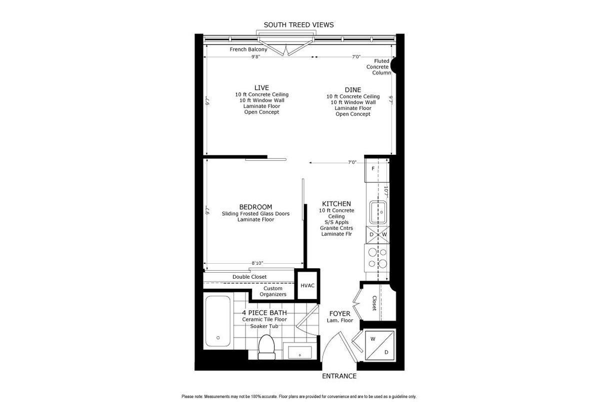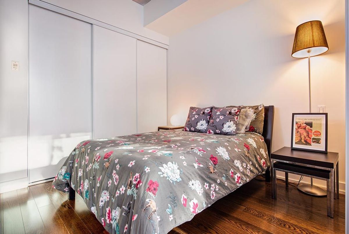 ** 20 Stewart Lofts ** Bright South Facing 1 Bedroom, 1 Bathroom, Juliette Balcony in Prime King West! Features Exposed Concrete 10" Ceilings, Fluted Concrete Column, Modern Kitchen with Granite Counters and Stainless Steel Appliances. Heart of King West, Bars, Restaurants, Entertainment, Steps to Streetcar, Access to Waterfront and Lakeshore and QEW