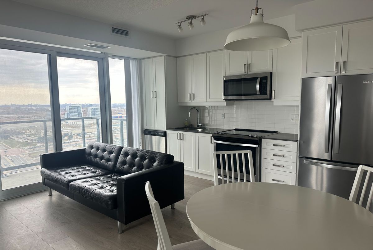 *Excellent Location!** This luxury 2-bedroom, 2-bathroom Corner unit at The Met Condos is conveniently located across from the VMC Subway and Bus Terminal. This corner unit features a carpet-free design, a large balcony, and an abundance of natural light with unobstructed south-west views. The layout is spacious and modern with great functionality. You'll enjoy easy access to Hwy 400/407, Downtown Toronto, York University, Vaughan Mills Mall, IKEA, Walmart, Costco, restaurants, schools, libraries, entertainment options, and more! Additional features include en-suite laundry and a range of amenities such as a gym, meeting room, party room, work stations, a theater, and much more! This unit is furnished. The tenant can choose to keep the furniture or not. The rent is $2,500 per month, excluding furniture.