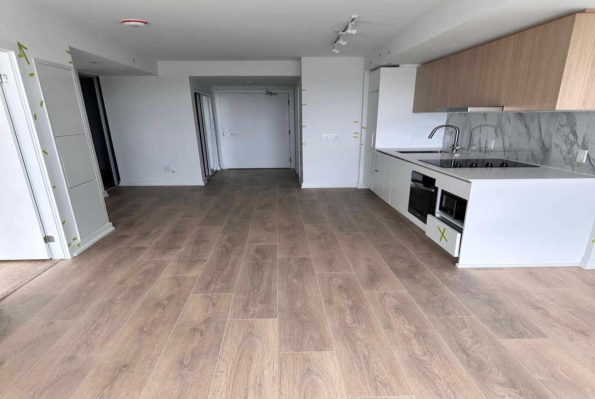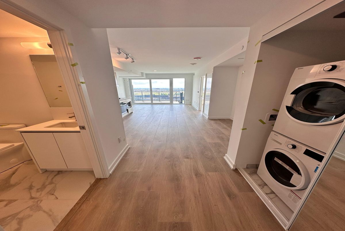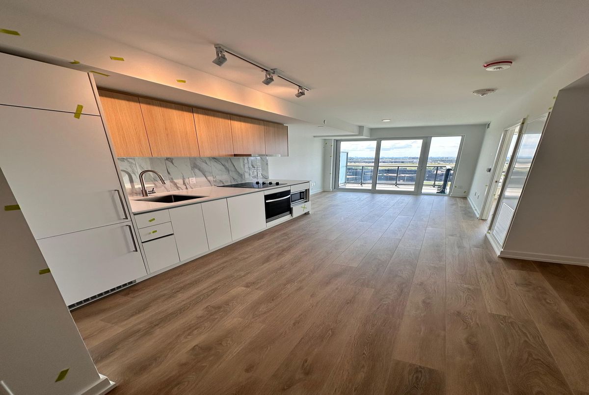 Experience modern living in this brand-new 1-bedroom + den, 2-bathroom suite at West line Condos. This stylish suite boasts laminate flooring throughout, a thoughtfully designed open-concept layout, and and a sleek kitchen equipped with luxury built-in appliances. The versatile den, complete with a sliding door, can easily be used as a second bedroom. The spacious modern modern kitchen features a large floor to ceiling window that fills the room with natural light. Step out onto your balcony with stunning city views-perfect for relaxing, entertaining, or enjoying your preferred drink while you enjoy the view. Perfectly located right on the subway line, this exceptional address provides effortless access to Yorkdale Mall, Downsview Park, York University, Sheppard West Subway Station, TTC bus routes, GO Station, Costco, and Highway 401.Residents of WESTLINE Condos enjoy an impressive collection of premium amenities, including24-hour concierge service, a state-of-the-art fitness centre, pet spa, stylish lounge with bar, rooftop terrace, private meeting rooms, an entertainment lounge with games, a children's playroom, and automated parcel storage. Rogers high-speed internet is included.
