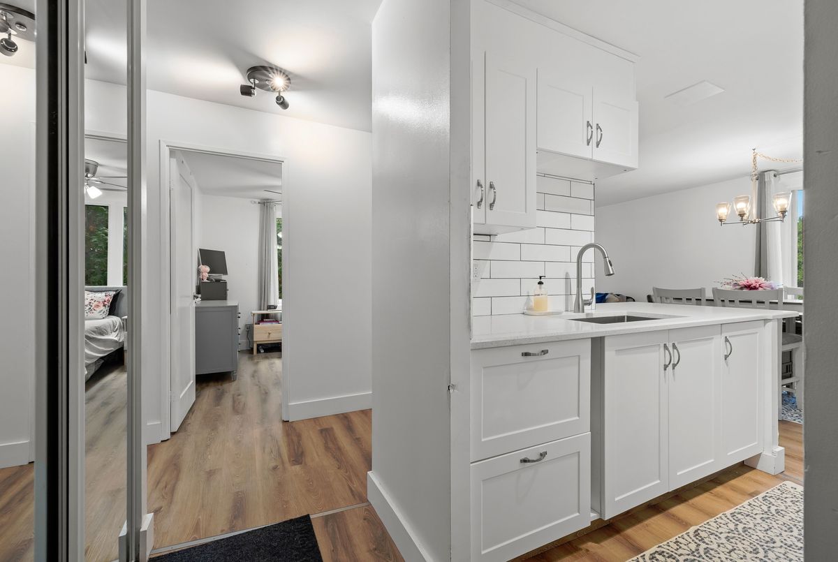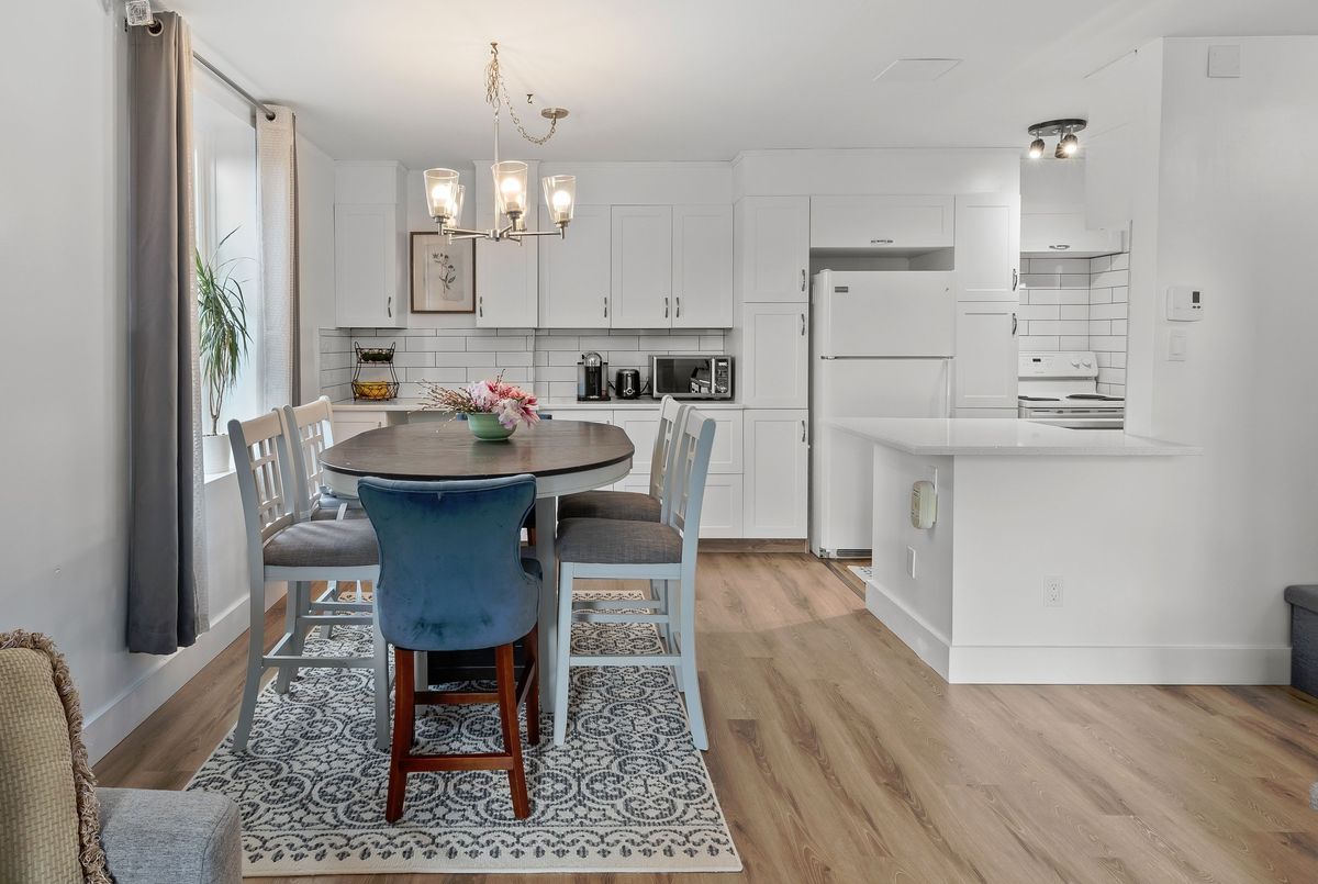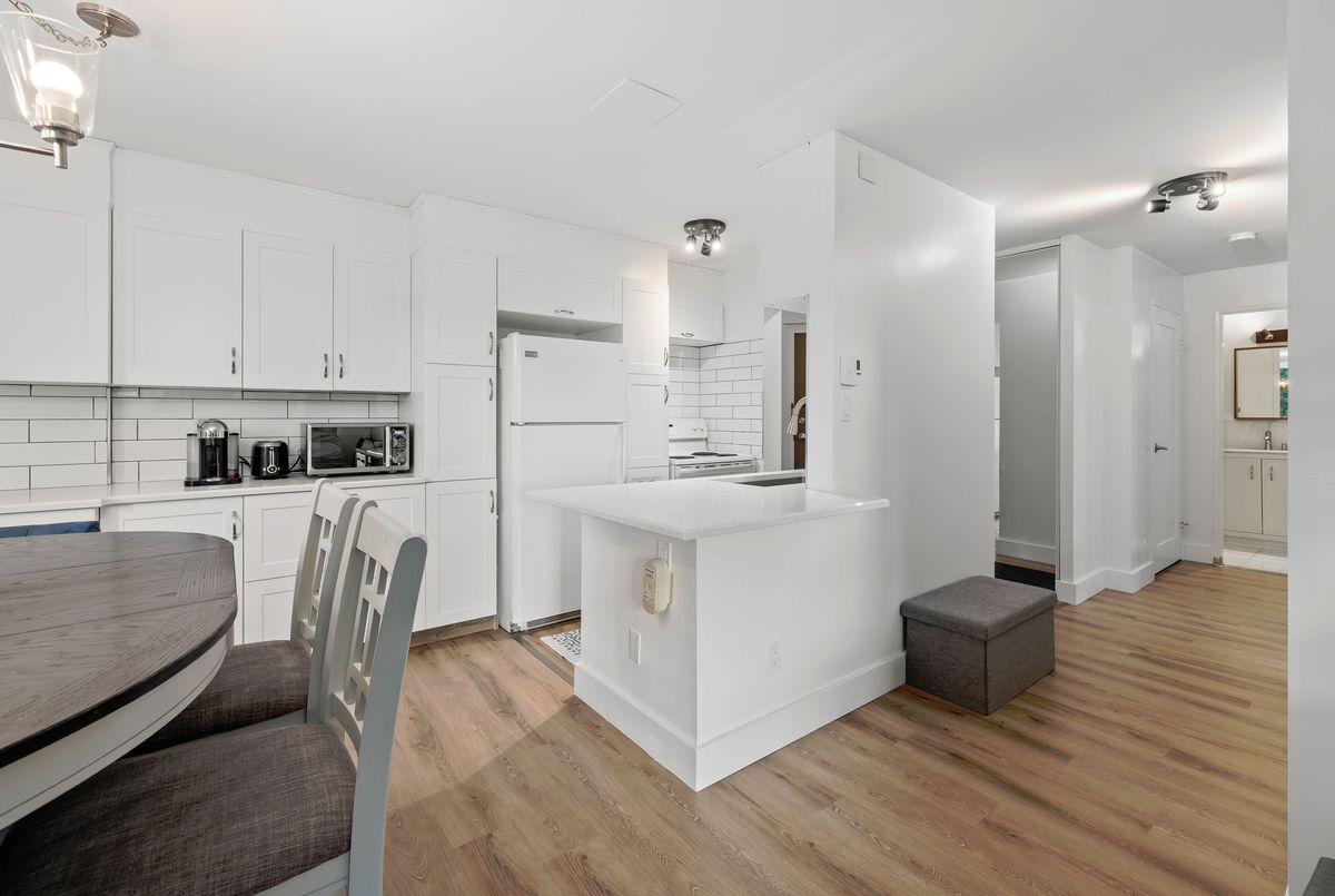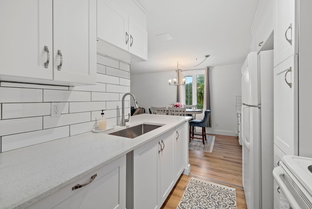 This fully renovated 2-bedroom, 1-bathroom main floor apartment combines modern style with convenience. Elevated above ground level for added privacy, and tucked away as an end unit, it offers abundant natural light and peaceful living. Inside, you'll find a brand new white kitchen featuring quartz countertops, extended cabinetry for ample storage, and thoughtful upgrades like a pull-out garbage drawer, deep storage drawers, an extended breakfast island, and a dedicated coffee station area. The clean subway tile backsplash ties the look together beautifully. The bathroom has been completely updated with tile floors, tile half-walls, a new vanity, and modern fixtures. Additional updates throughout the home include new lighting, carpet-free laminate flooring, interior doors, trim, baseboards, mirrored closet doors, and energy-efficient baseboards. Located in a quiet building at the end of Queen Mary Road, this apartment backs onto parkland and wetlands for a natural setting while still being in a city-central location. With easy access to transit, shopping, Queens University, hospitals, and downtown, it's an ideal spot for both convenience and tranquility. Affordable, stylish, and move-in ready this is the perfect opportunity to simply turn the key and settle into your new home.