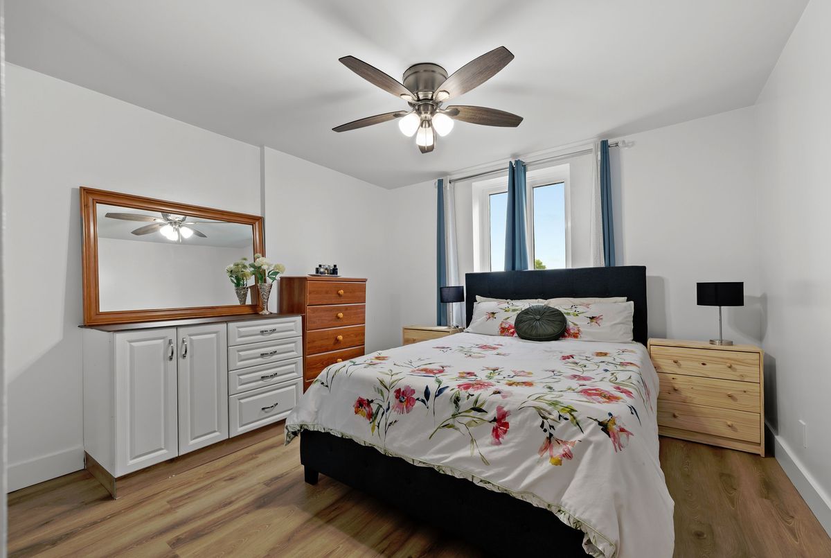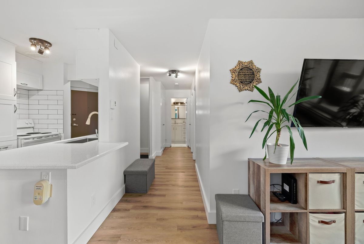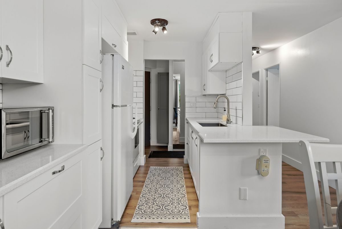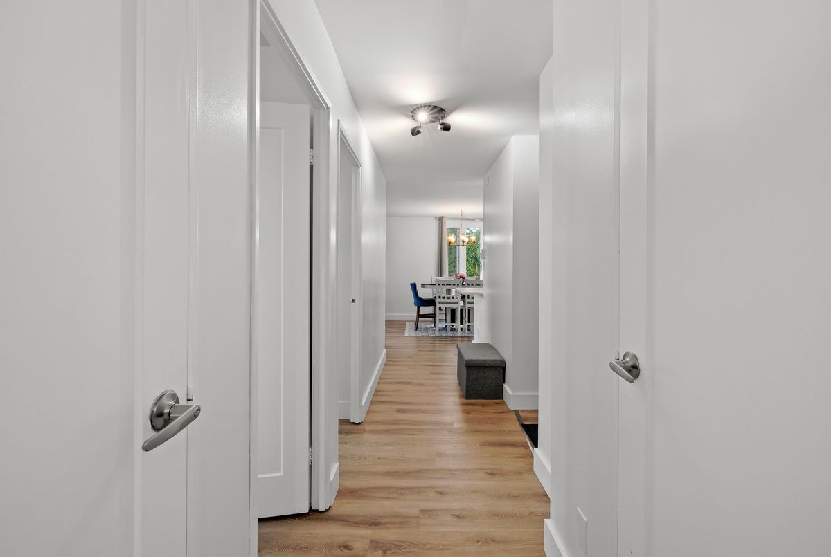 This fully renovated 2-bedroom, 1-bathroom main floor apartment combines modern style with convenience. Elevated above ground level for added privacy, and tucked away as an end unit, it offers abundant natural light and peaceful living. Inside, you'll find a brand new white kitchen featuring quartz countertops, extended cabinetry for ample storage, and thoughtful upgrades like a pull-out garbage drawer, deep storage drawers, an extended breakfast island, and a dedicated coffee station area. The clean subway tile backsplash ties the look together beautifully. The bathroom has been completely updated with tile floors, tile half-walls, a new vanity, and modern fixtures. Additional updates throughout the home include new lighting, carpet-free laminate flooring, interior doors, trim, baseboards, mirrored closet doors, and energy-efficient baseboards. Located in a quiet building at the end of Queen Mary Road, this apartment backs onto parkland and wetlands for a natural setting while still being in a city-central location. With easy access to transit, shopping, Queens University, hospitals, and downtown, it's an ideal spot for both convenience and tranquility. Affordable, stylish, and move-in ready this is the perfect opportunity to simply turn the key and settle into your new home.